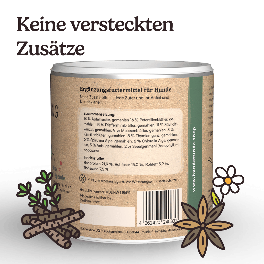 Unterstützt bei: Durchfall, Blähungen, gras fressen, Sodbrennen
